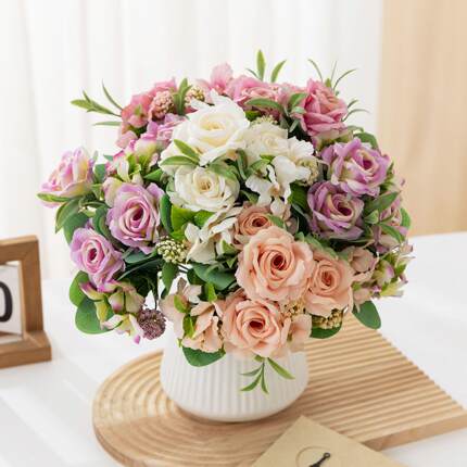 网红仿真玫瑰花把束家居装饰小玫瑰仿真花客厅摆件跨境绿植仿真花