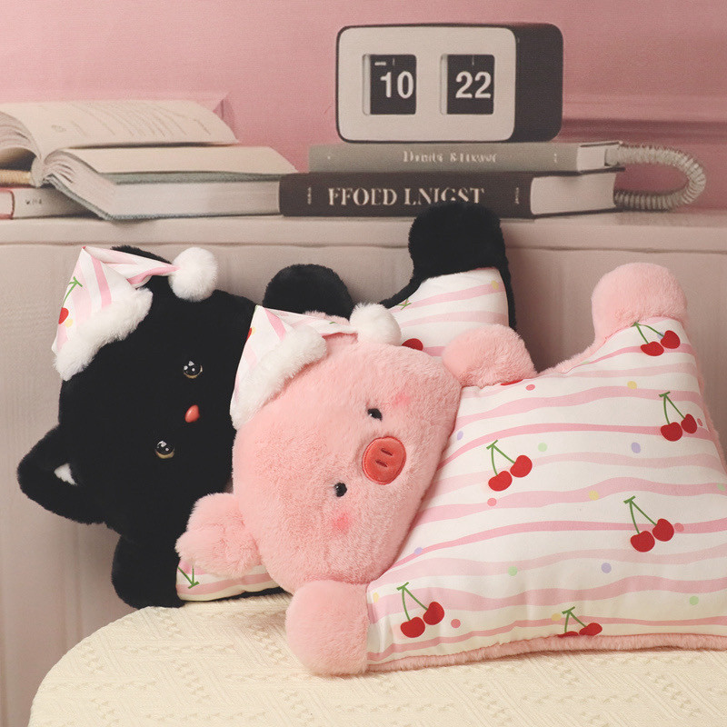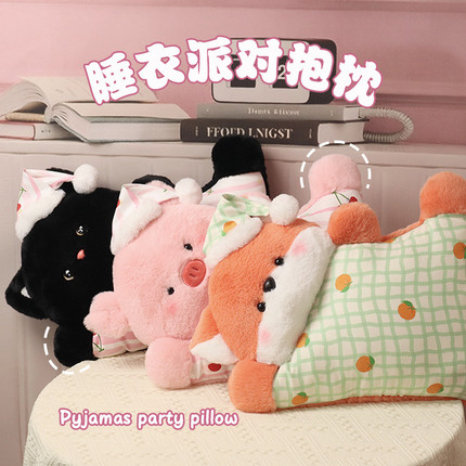 睡衣派对抱枕卡通企鹅猫咪小羊小猪狐狸公仔玩偶毛绒玩具睡觉礼物