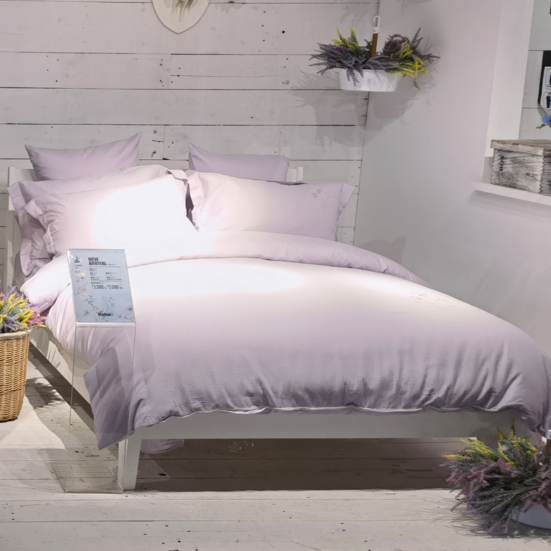 多喜爱A类全棉四件套双层棉纱紫/绿纯色套件床上1.5/1.8m紫蝶花飞
