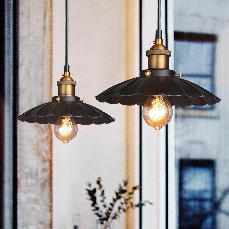美式乡村工业风复古铁艺小吊灯餐厅过道咖啡厅吧台单头荷叶吊灯具
