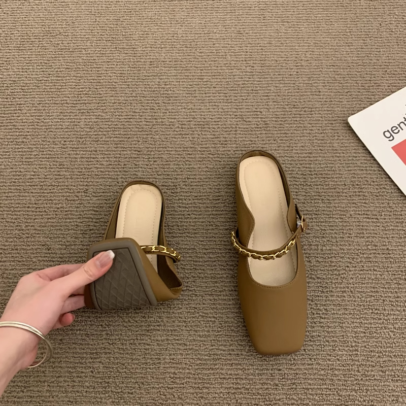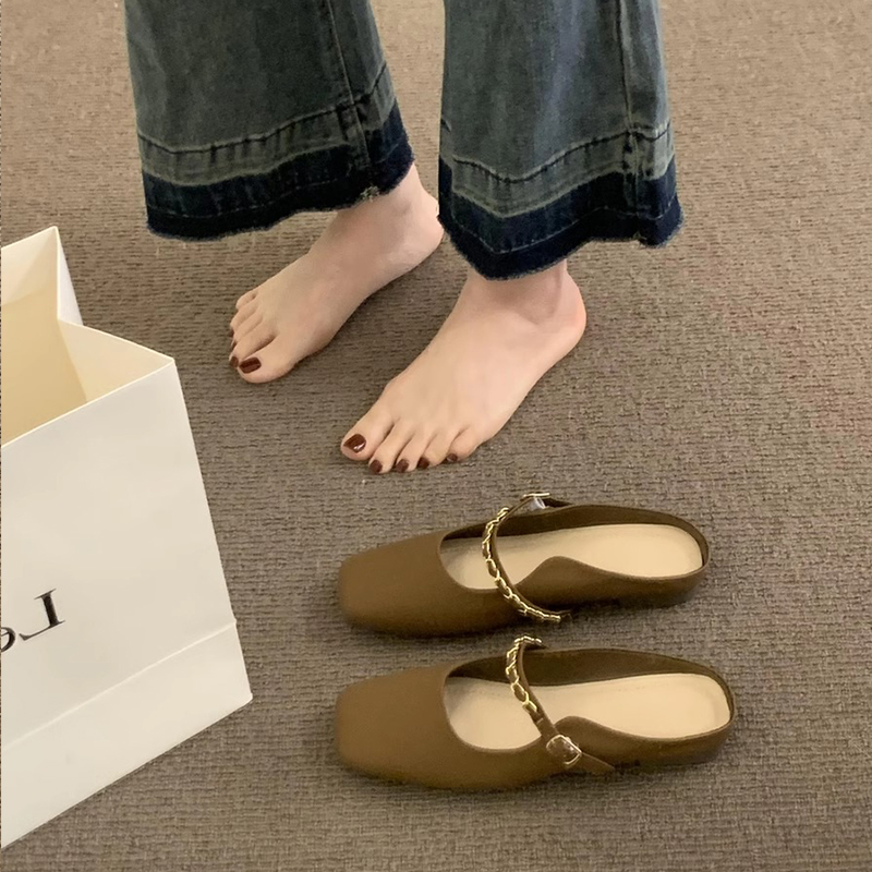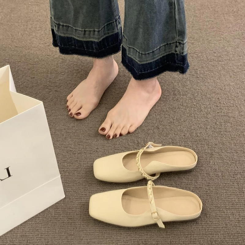 法式懒人平底包头半拖鞋女2025夏季新款奶奶鞋无后跟玛丽珍单鞋子