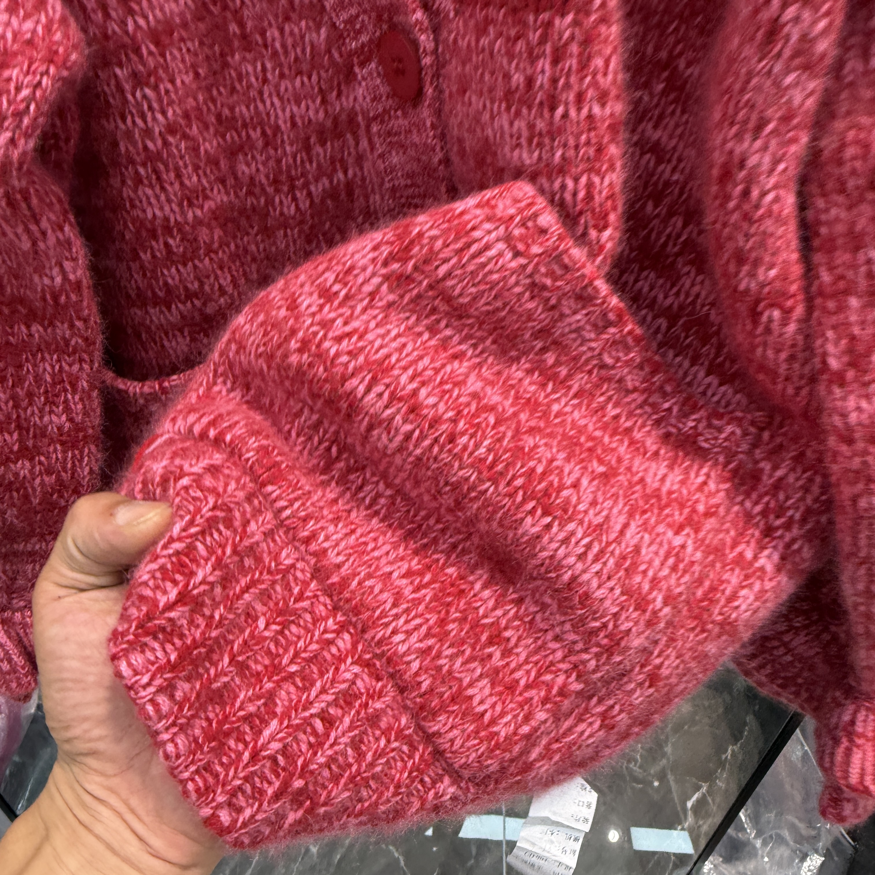 欧洲站2025秋冬新款V领单排扣慵懒风软糯花边袖口羊毛针织开衫女