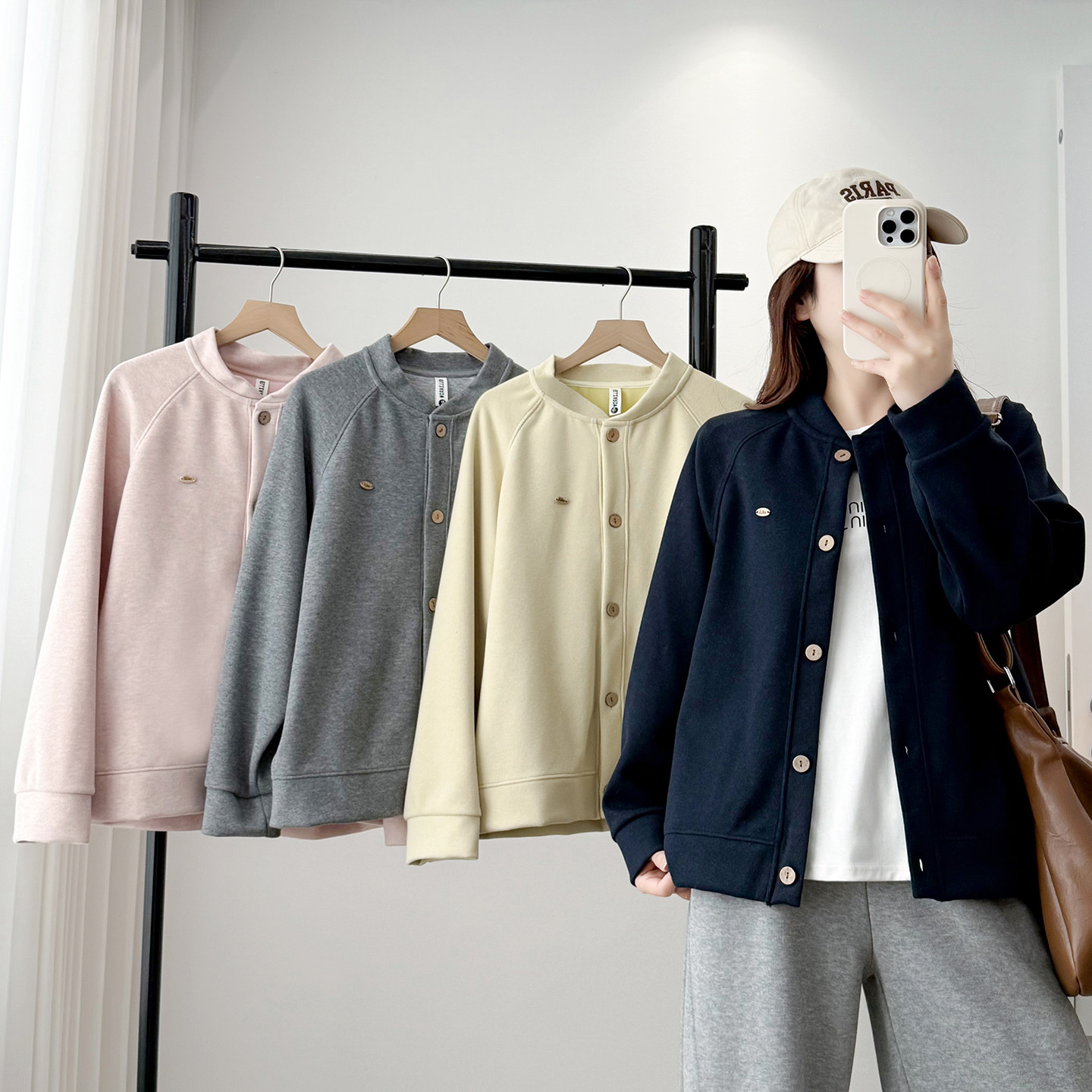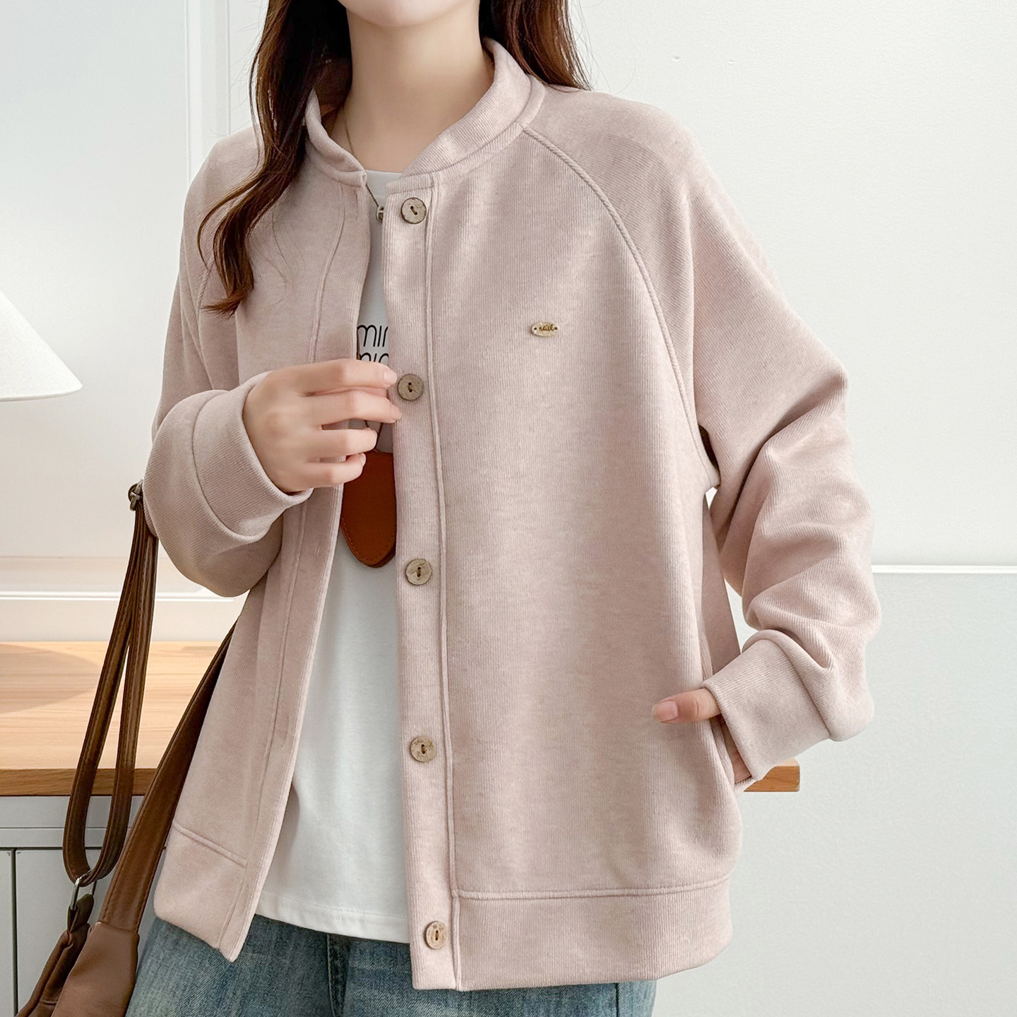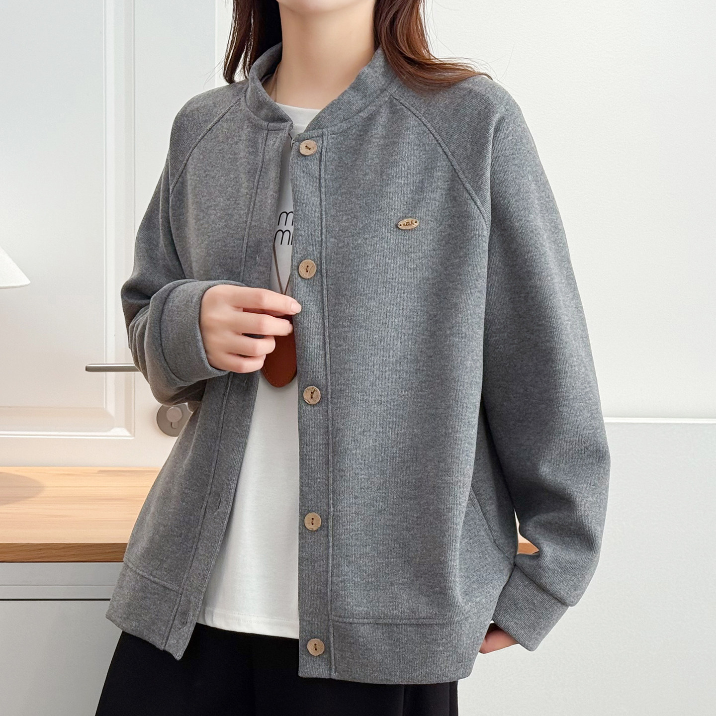 胖mm秋冬大码女装宽松显瘦棒球服外套简约百搭遮肉插肩袖卫衣开衫