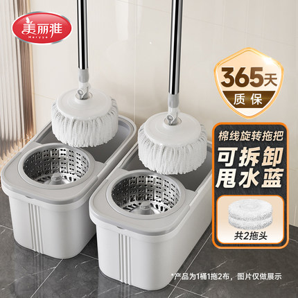 美丽雅旋转拖把家用免手洗双驱动甩水懒人拖地神器一拖净加厚墩布