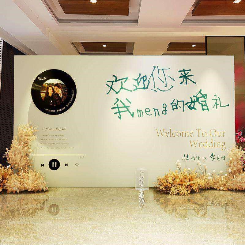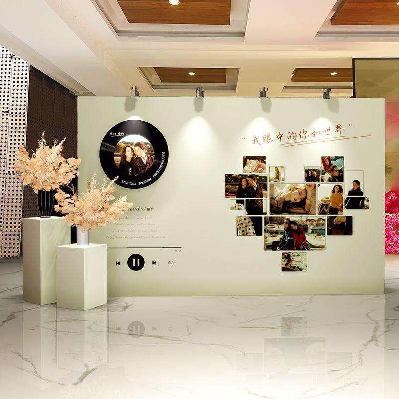 复古唱片机订婚布置装饰场景迎宾牌结婚礼留影区高级感板背景墙