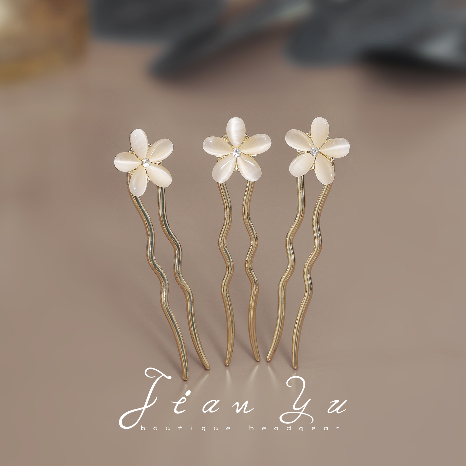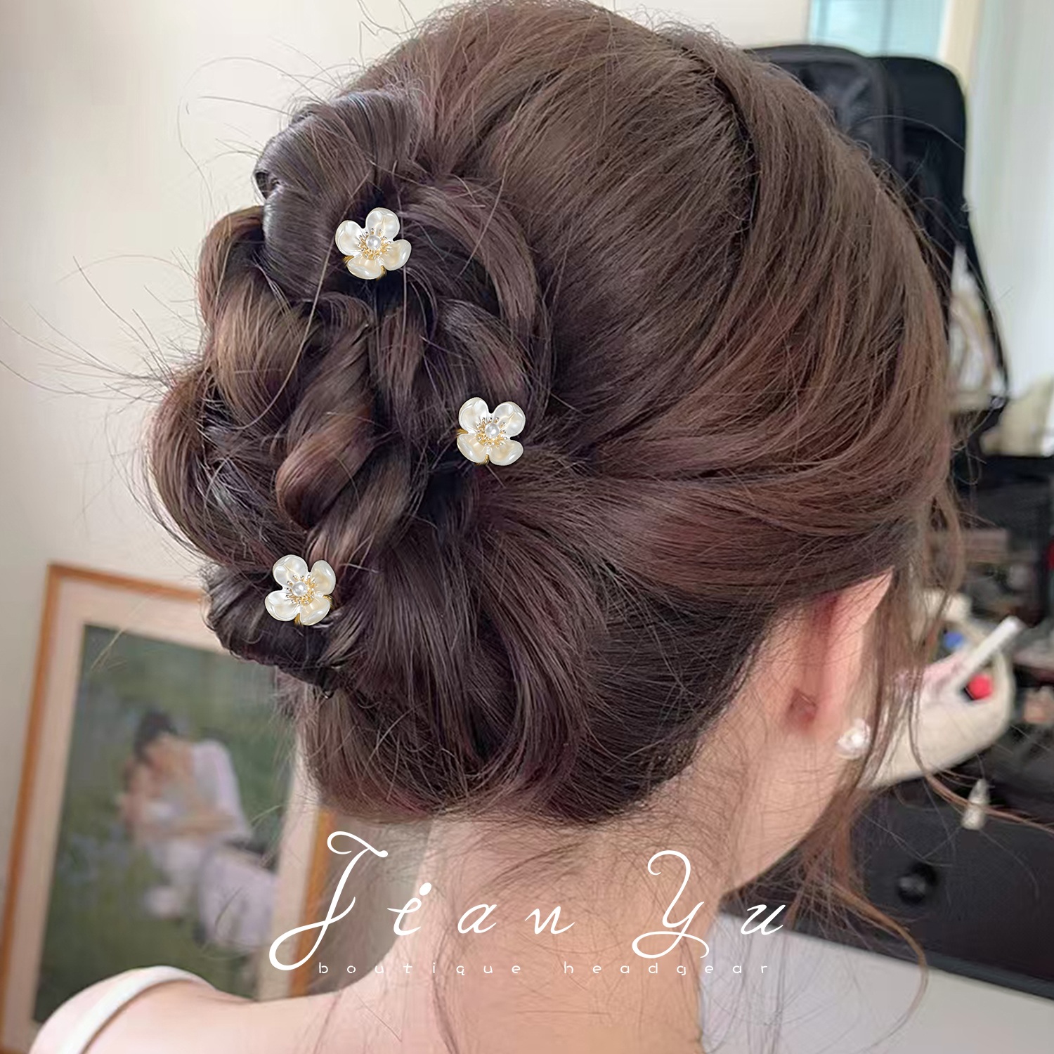2025新款古风花朵U型发簪插梳盘发后脑勺发钗簪子高级感水钻发饰