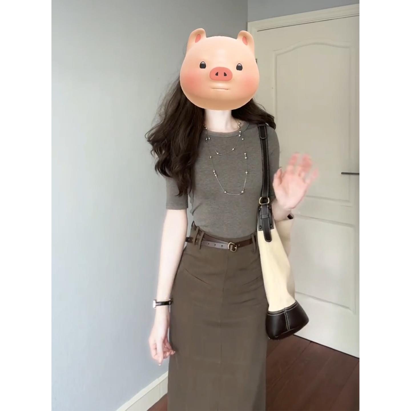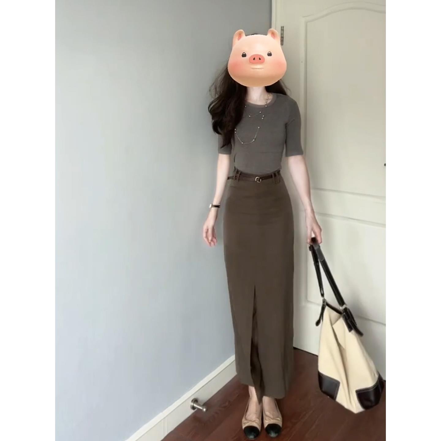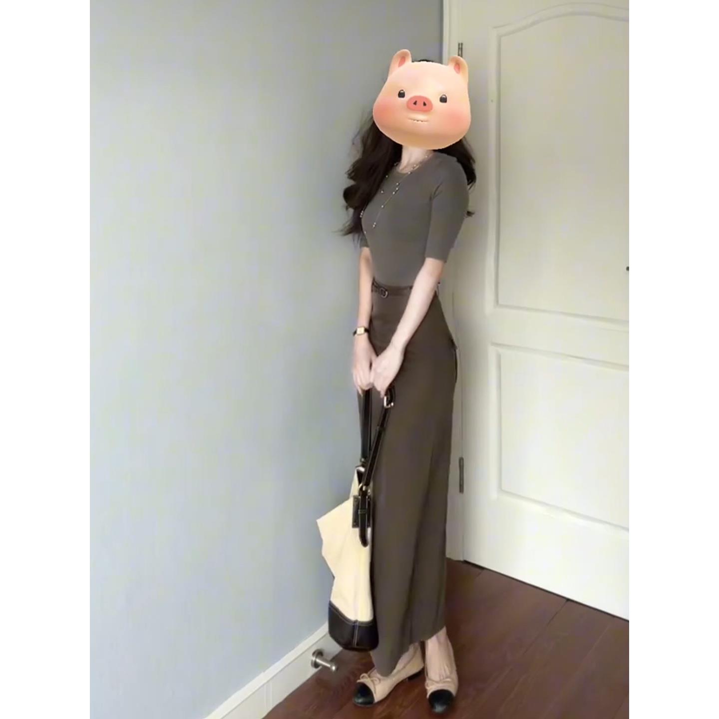 一整套ootd穿搭套装气质显身材复古灰色上衣包臀半身裙两件套25秋