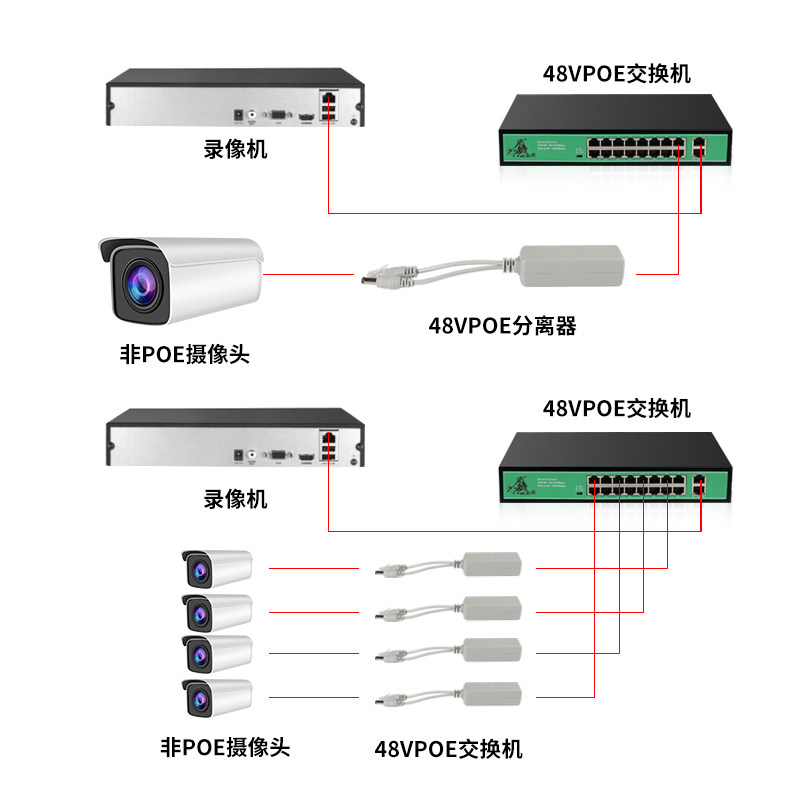 东莞小耳朵标准POE分离器48V转12Vpoe分离线网络摄像头供电模块