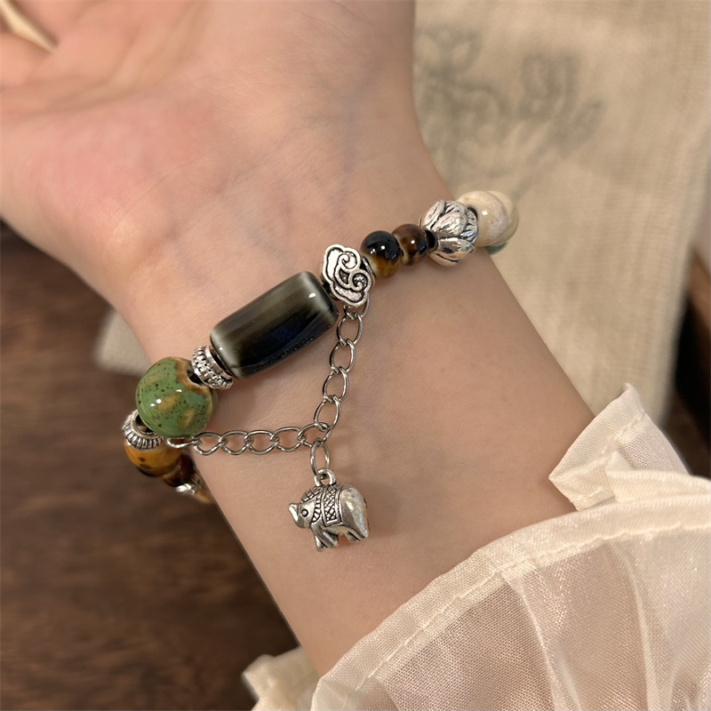 FANSAI景德镇陶瓷串珠手链新中式禅意国风古风高级感弹力绳手串