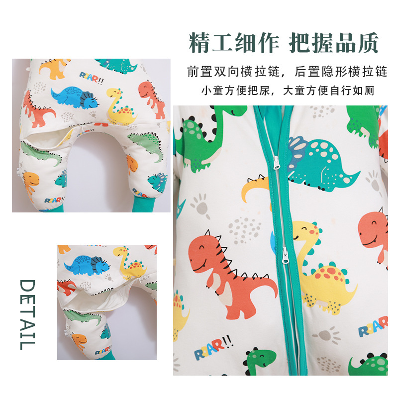 儿童睡袋秋冬双层纯棉中大童可拆袖防踢被女宝宝分腿睡衣恐龙男孩