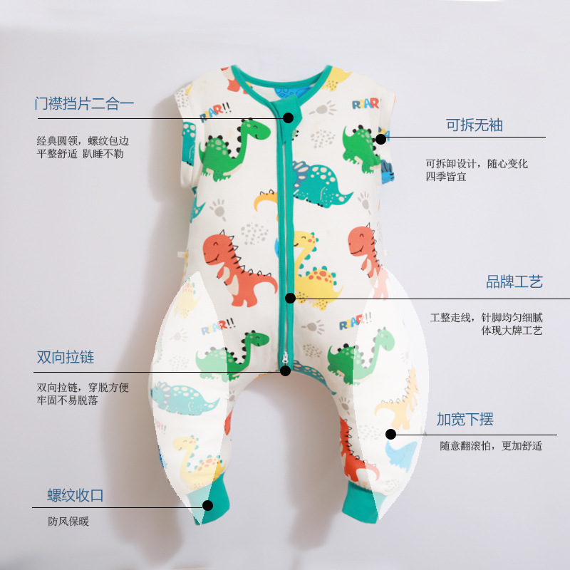 双层纯棉可拆袖女宝宝恐龙防踢被