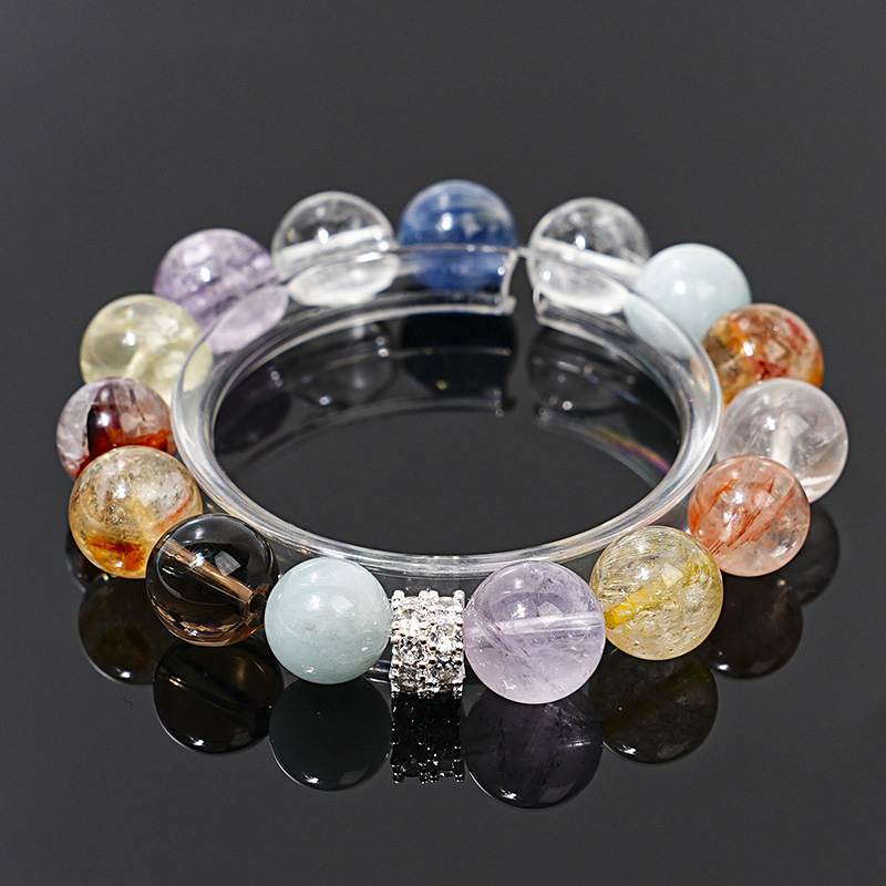 【霓虹甜心】高货天然海蓝宝水晶手串女款红胶花茶晶时尚手链