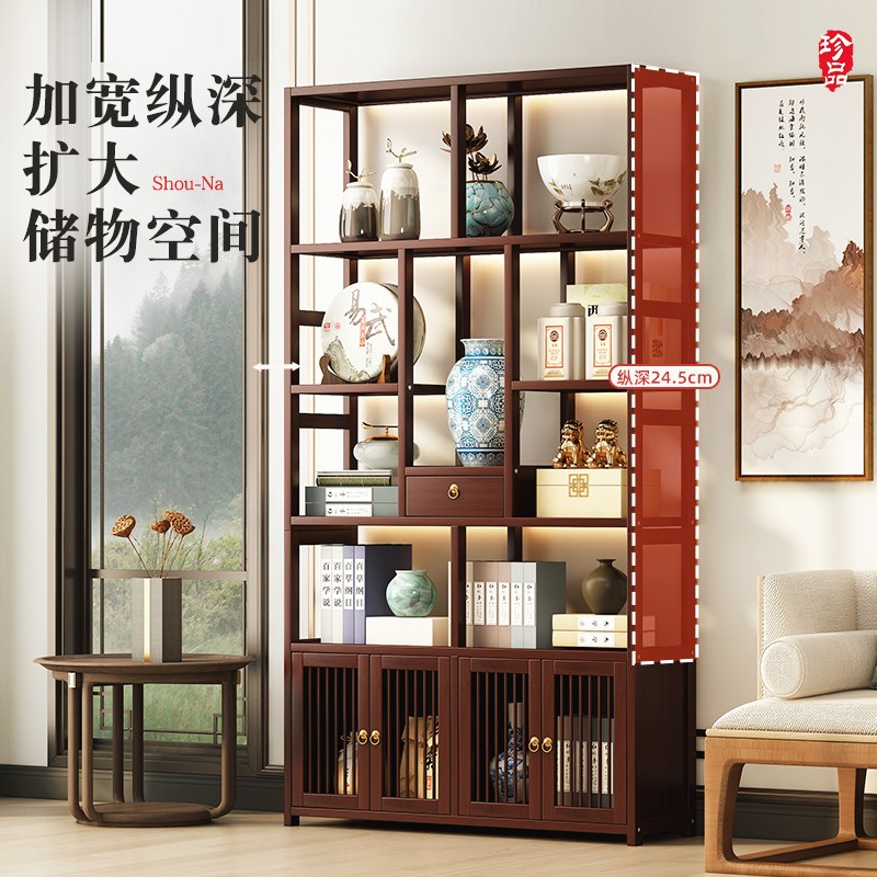 新中式博古架非实木茶叶展示架茶柜置物架客厅多宝阁茶室隔断书架