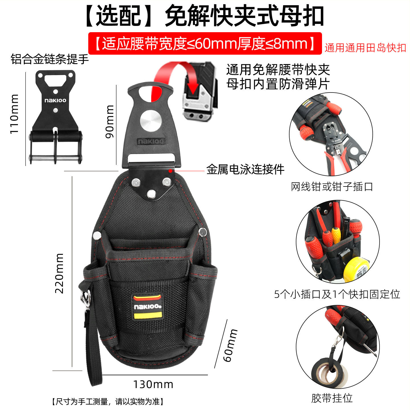 nakioo旋转快挂电工腰包网线钳螺丝刀工具包电信腰带挂包工具挂袋