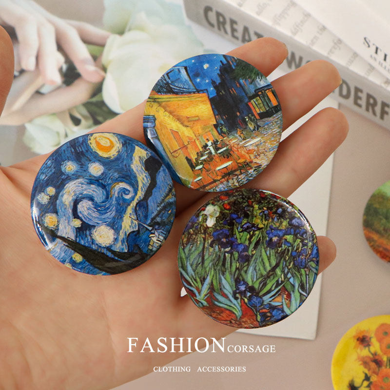 梵高名画徽章胸针油彩画向日葵莺尾花图案胸章包包装饰品吧唧别针