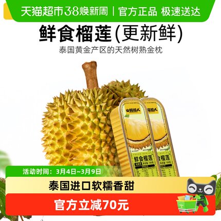 山猫超人鲜食榴莲泰国金枕无核果肉100g*4盒自然树熟