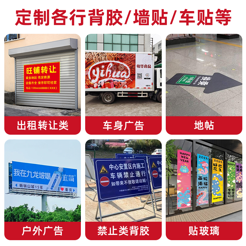 广告贴纸不干胶背胶定制打印防水防晒户外pvc墙贴招牌自粘贴海报