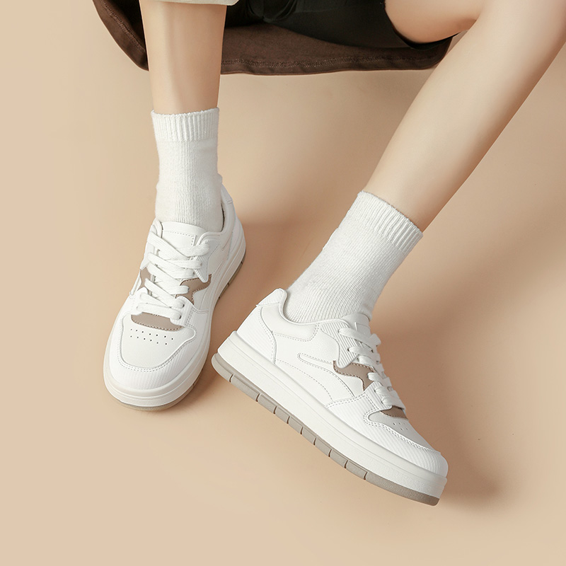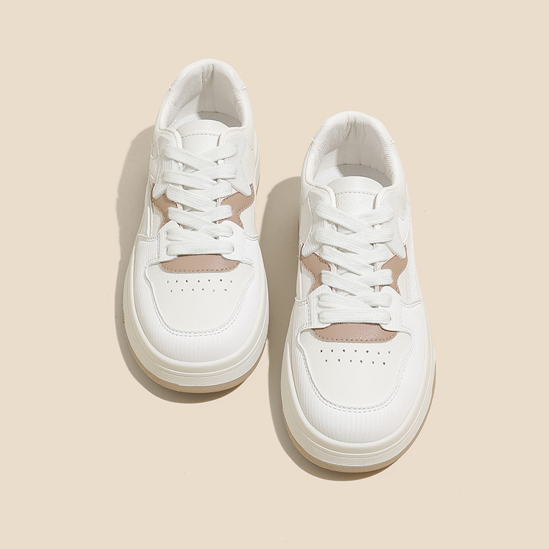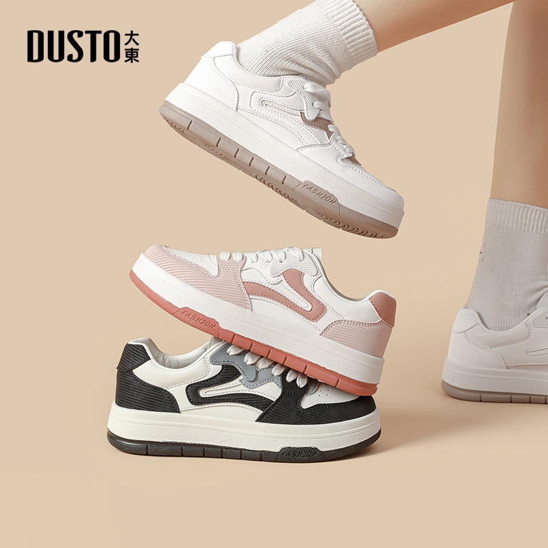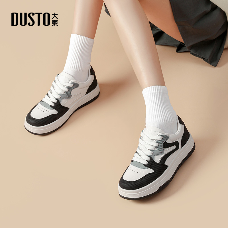 大东拼色板鞋2025秋季新款休闲风低跟平底小白鞋圆头系带女鞋7506