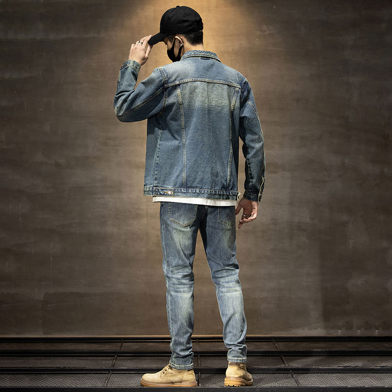 春秋牛仔休闲套装男士外套韩版时尚夹克修身衣服牛仔衣裤子两件套