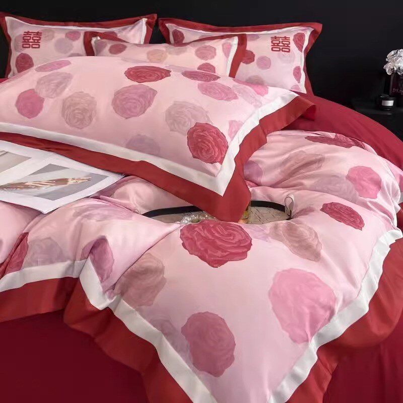 中式新婚结婚四件套大红色陪嫁床单被套纯棉婚庆T床上用品婚房喜