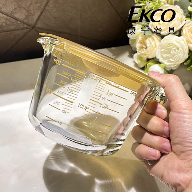 康宁琥珀色微波炉可加热玻璃牛奶杯耐高温儿童早餐杯子量杯带刻度