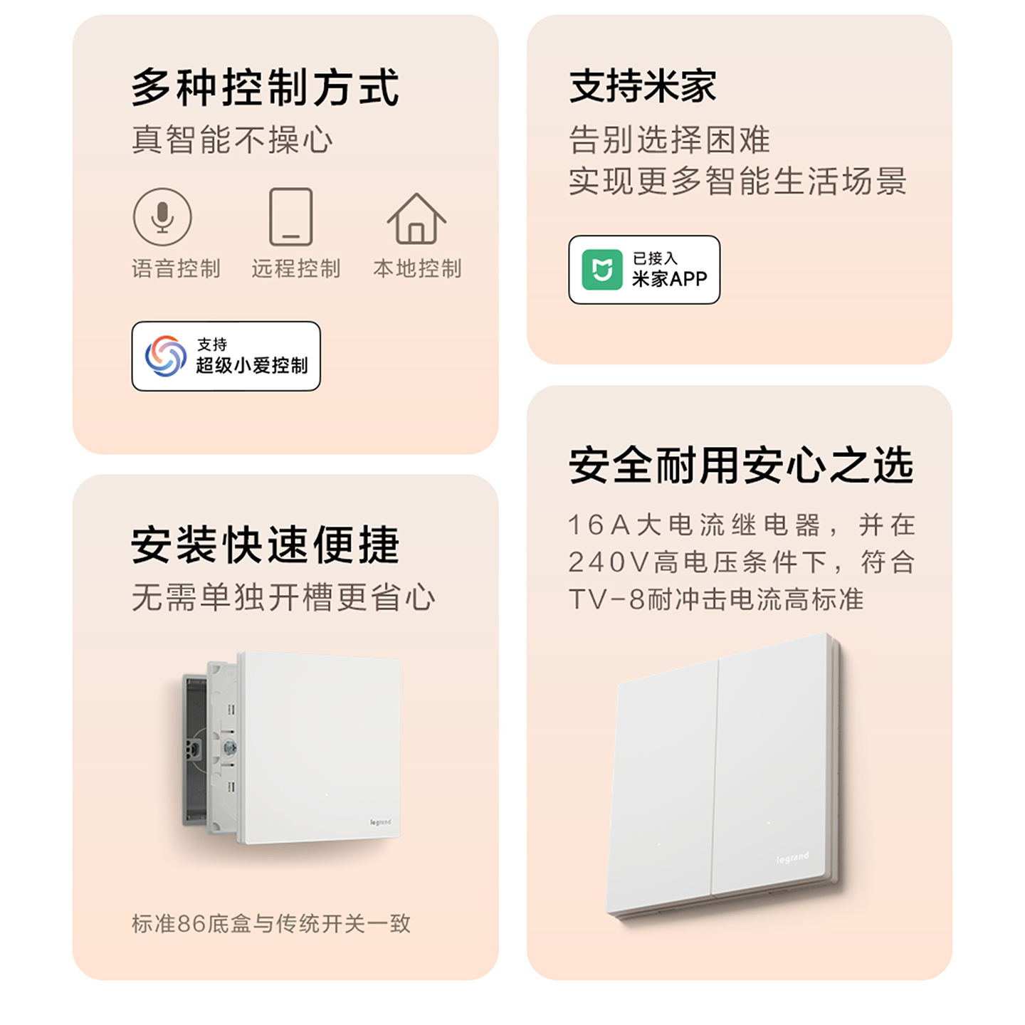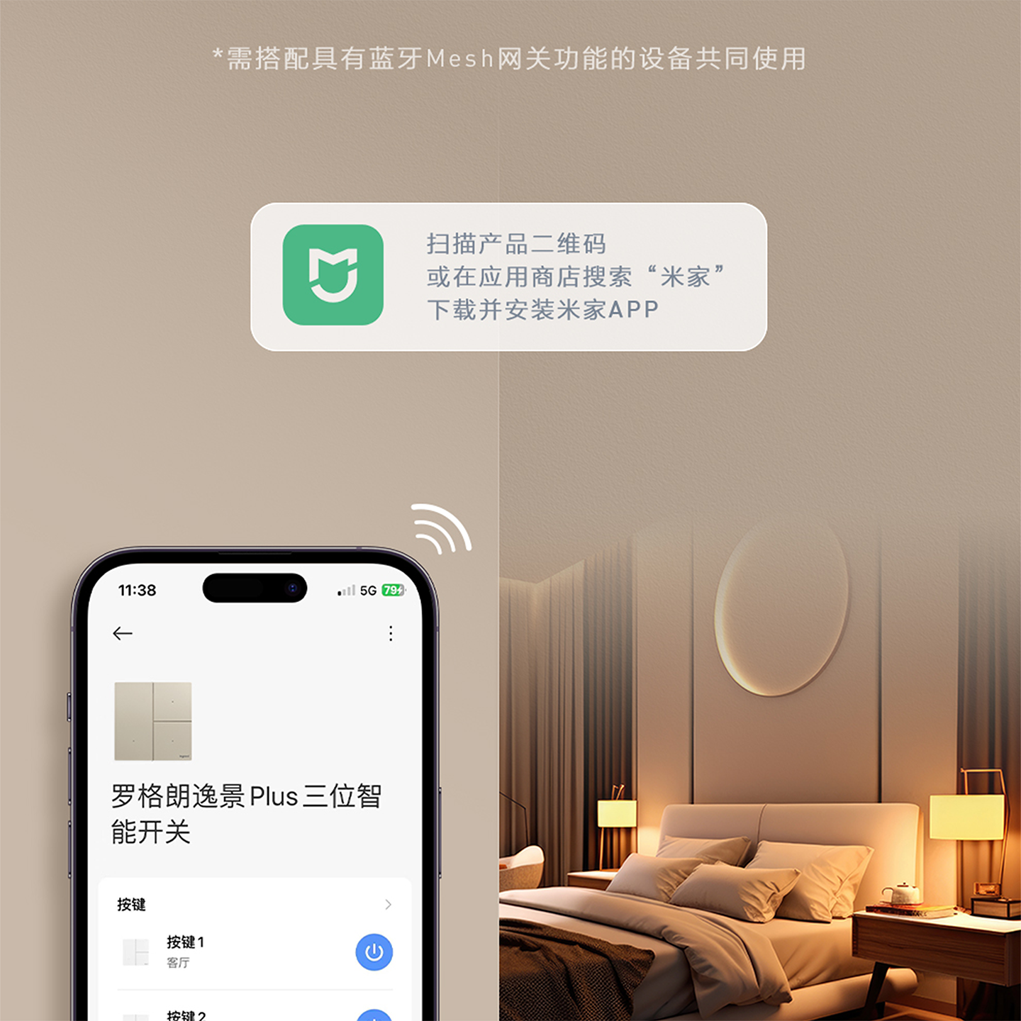 罗格朗逸景plus智能开关已接入米家控制蓝牙mesh小爱语音双控零火
