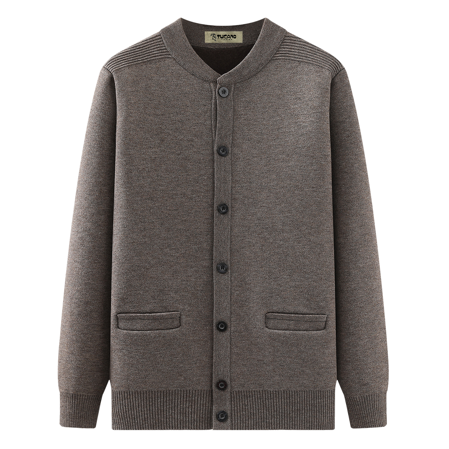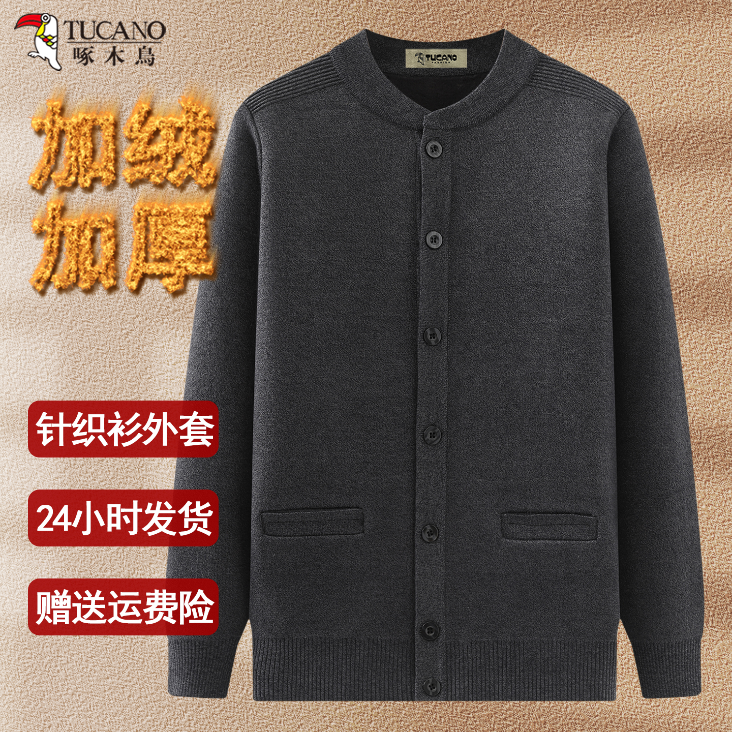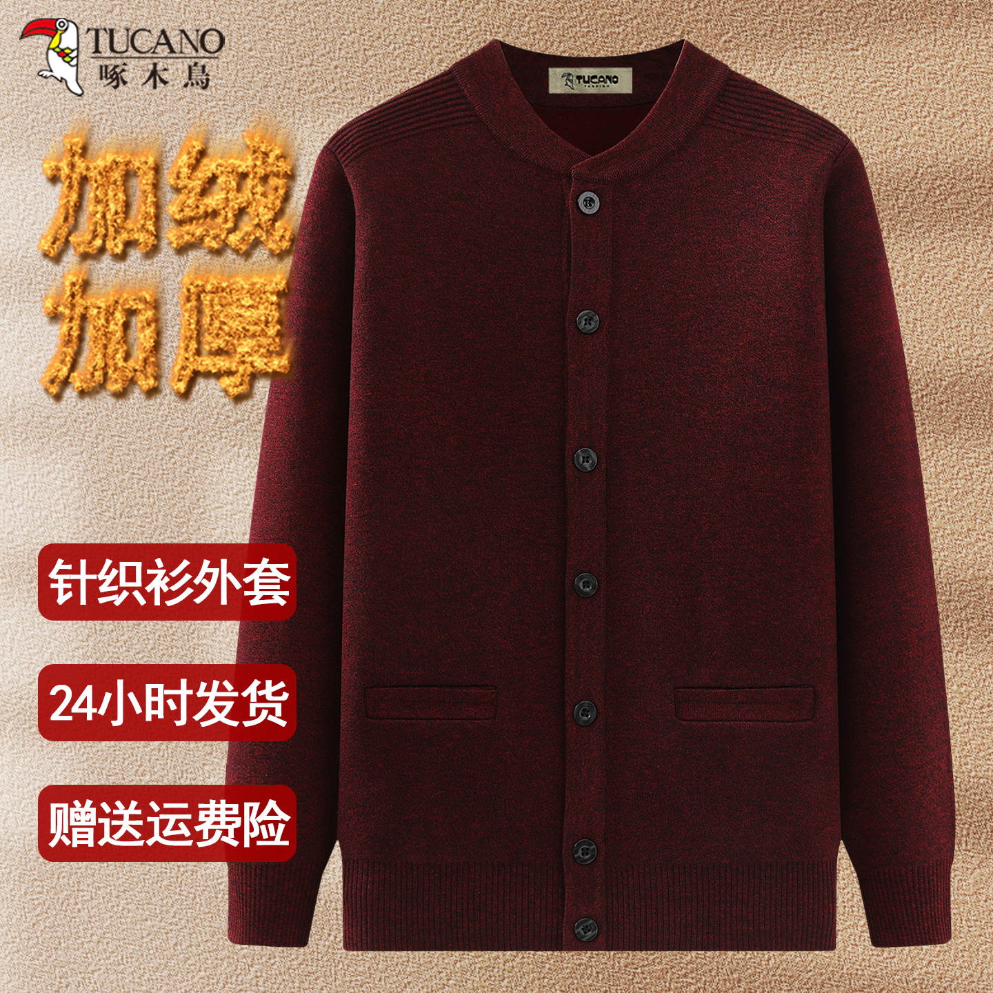 啄木鸟中老年针织衫加绒加厚男款秋冬季爸爸圆领6070岁一体绒毛衣