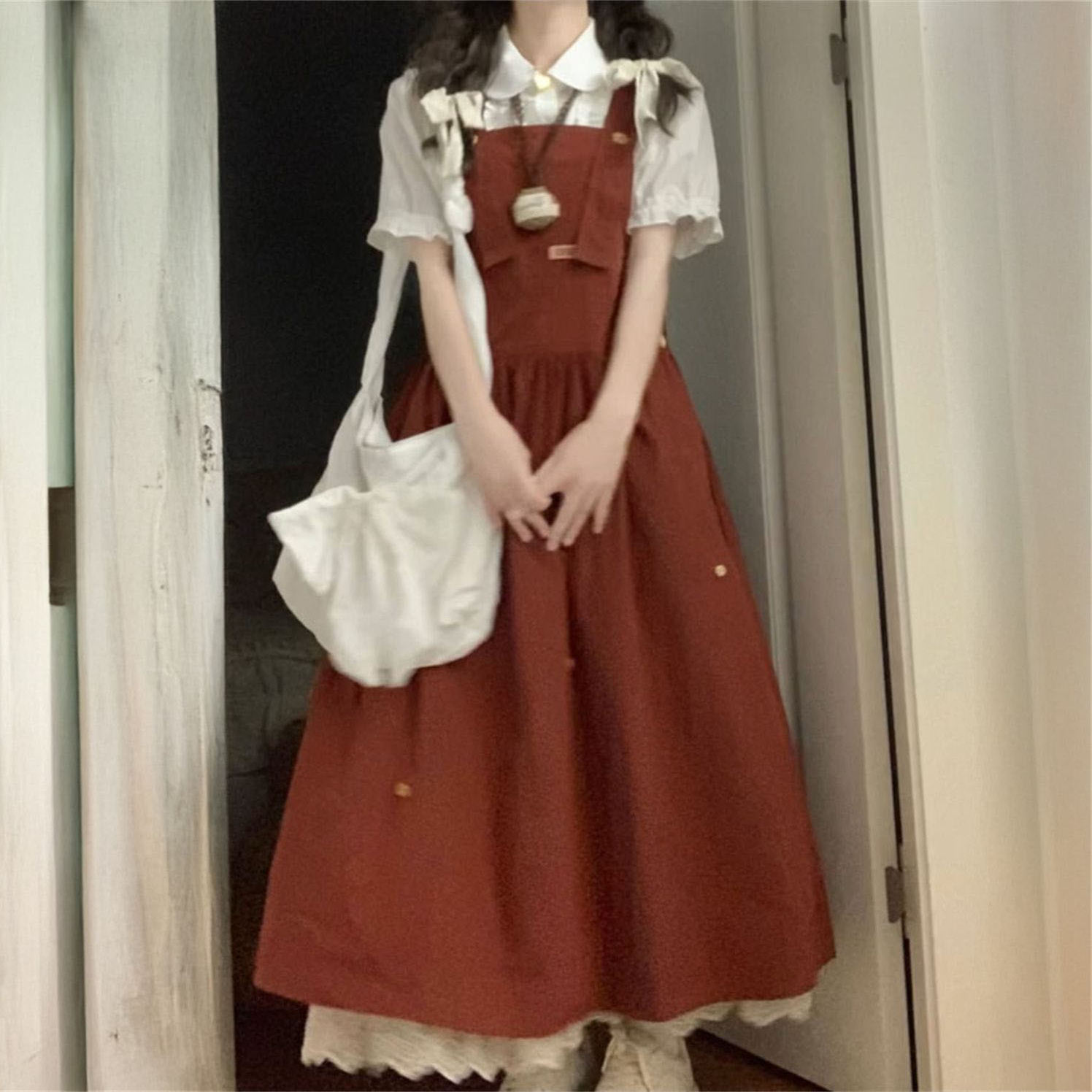 法式温柔淑女风气质减龄背带裙搭配娃娃领短袖上衣夏季两件套装女