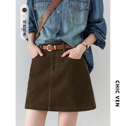 复古高腰灯芯绒半身裙女
