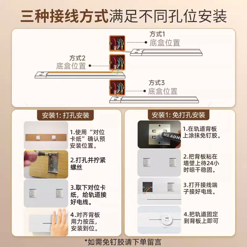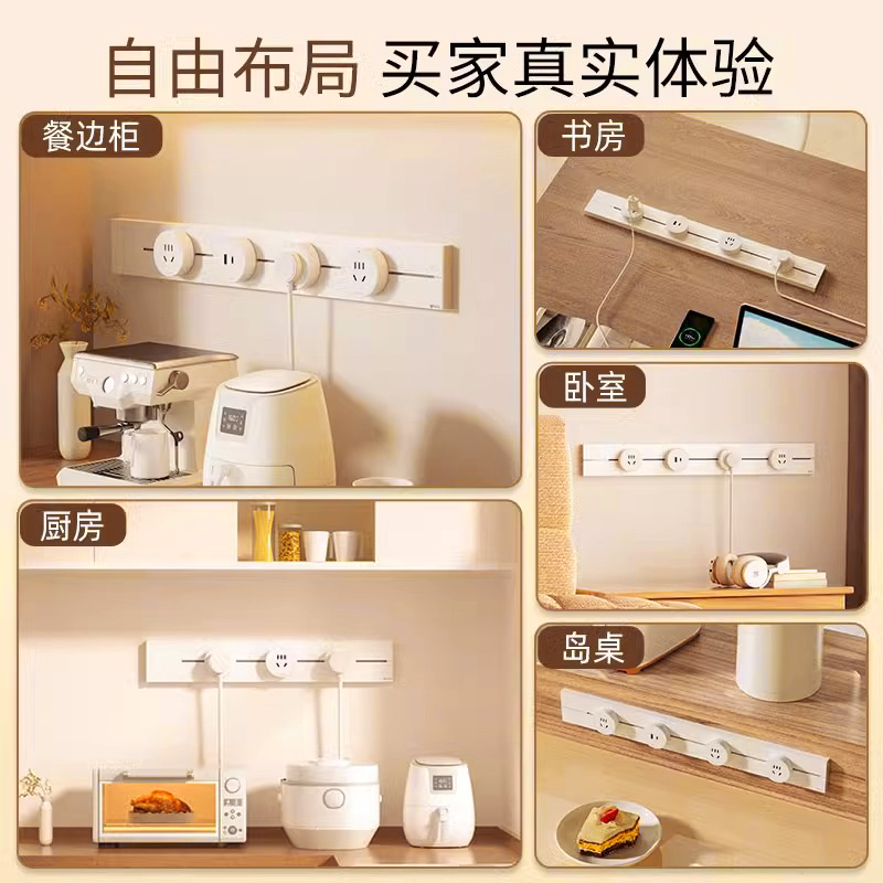 公牛奶油风白色轨道插座可移动导轨插排厨房餐边柜磁吸电力滑动轨