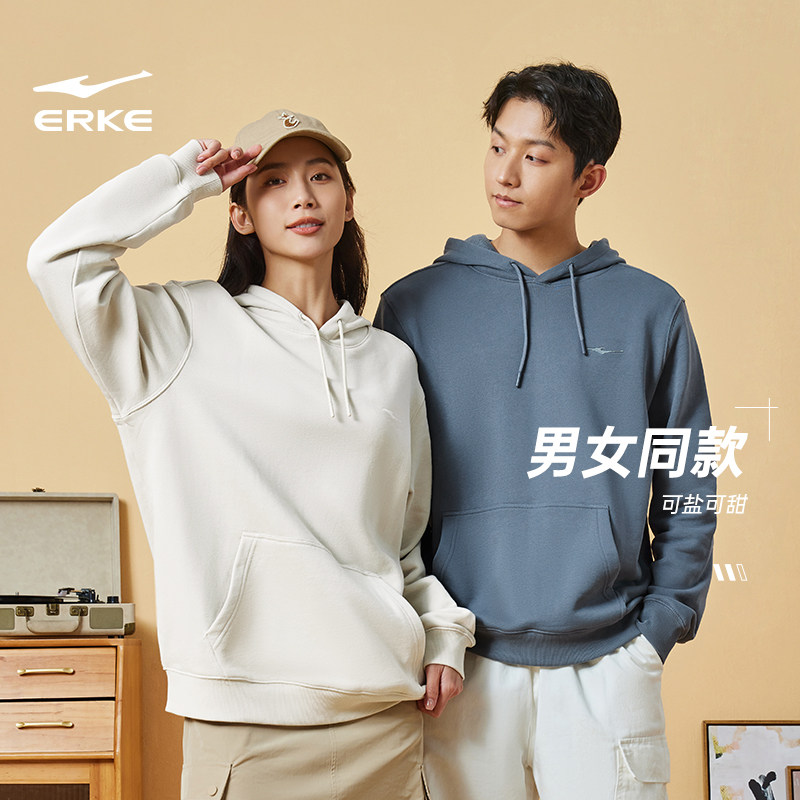 色彩博物馆丨鸿星尔克新疆棉夏季男女情侣运动宽松套头衫连帽卫衣