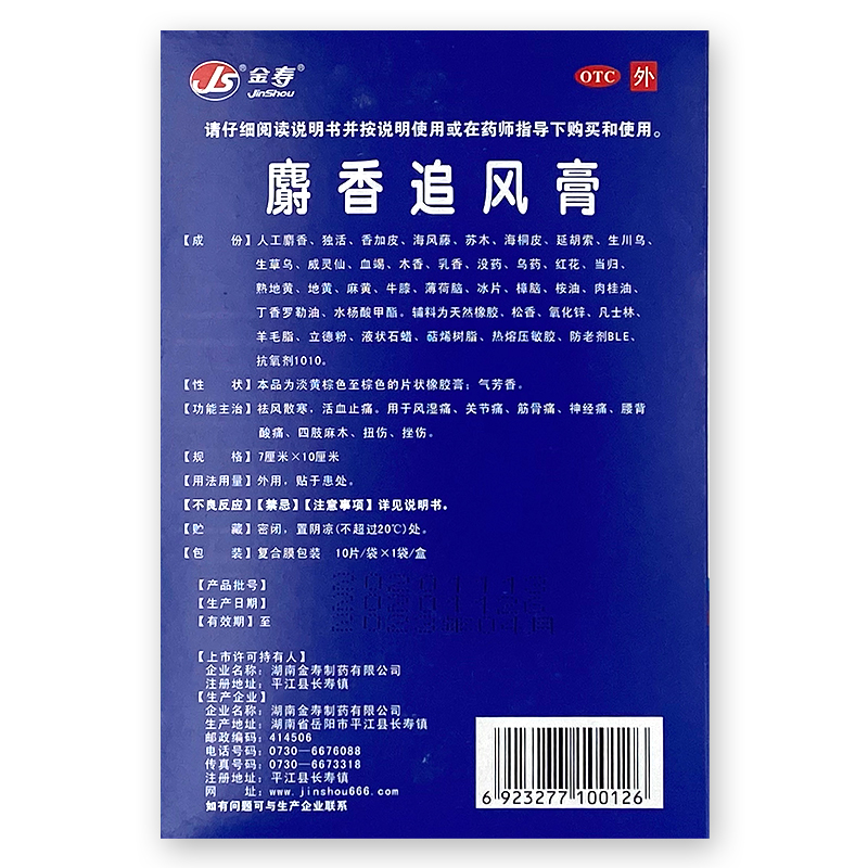 金寿麝香追风膏10贴祛风散寒活血止痛腰背酸痛风湿痛关节痛筋骨痛