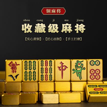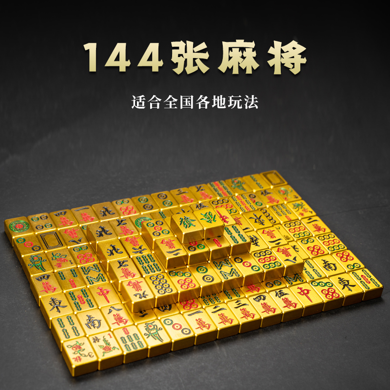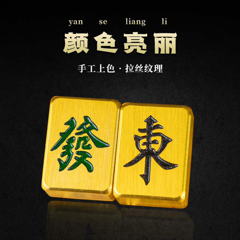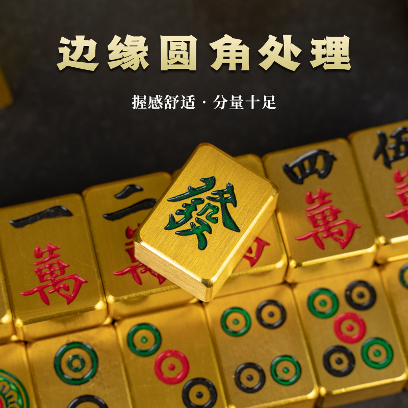 定制刻字黄铜麻将礼品广东麻将牌上色卡通麻将金色礼物个性小麻将