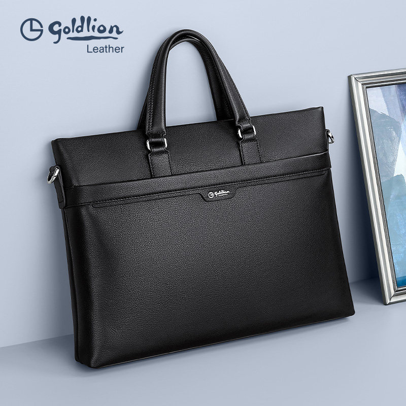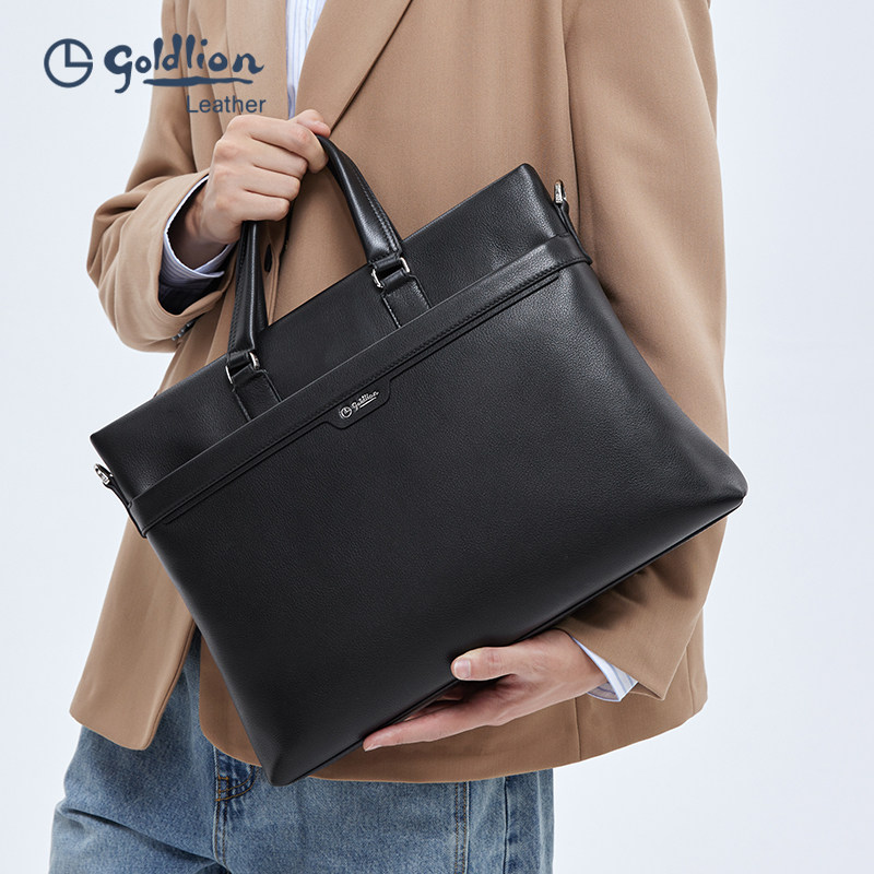 金利来新款简约商务手提包男士真皮大容量牛皮公文包轻奢感男包