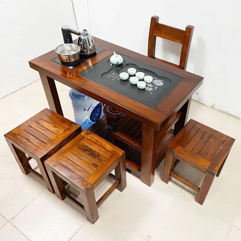 老船木小户型阳台茶桌椅组合实木办工茶客厅几家用简约小型桌台茶