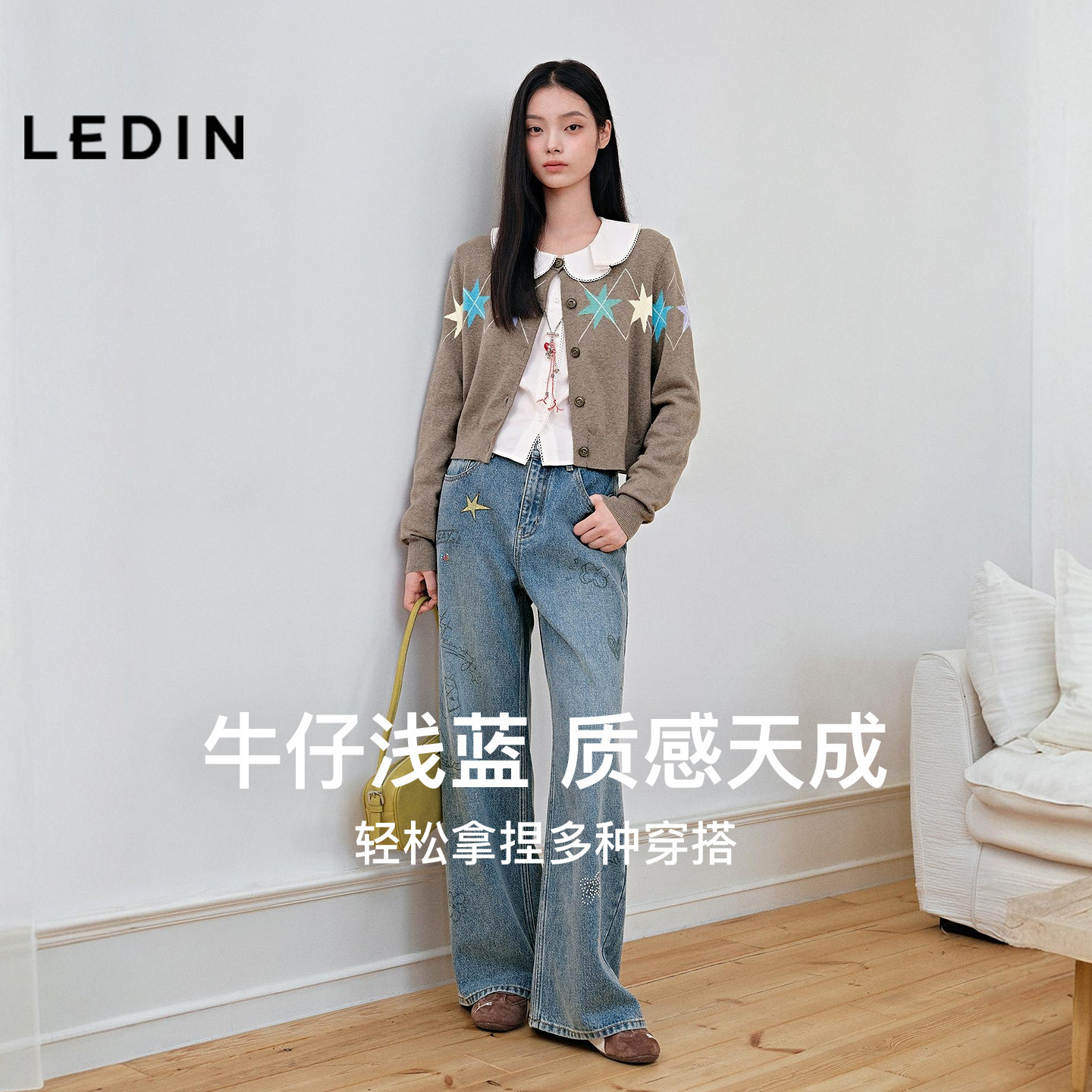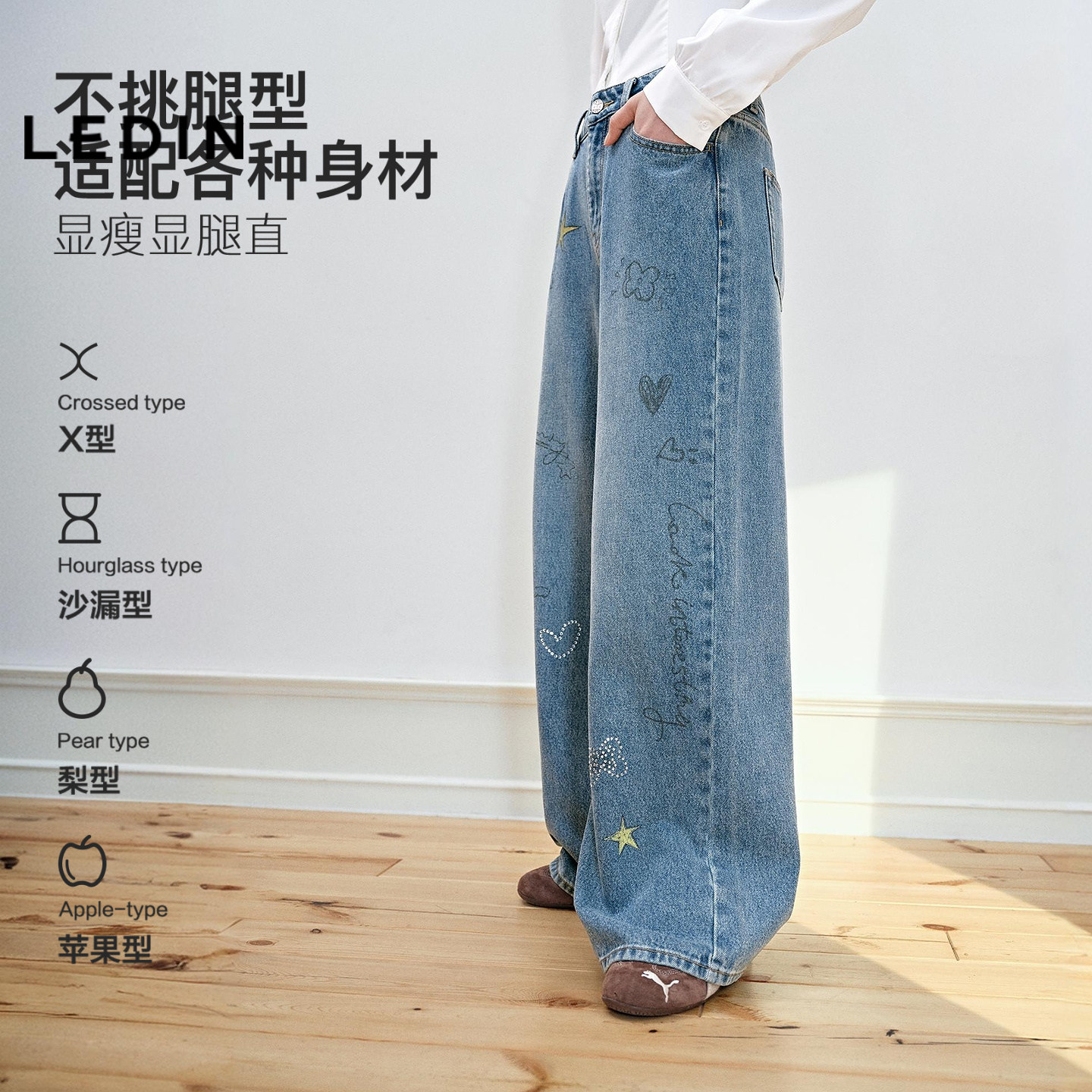 乐町满印图案宽松水洗牛仔裤2026新款烫钻涂鸦设计百搭休闲直筒裤