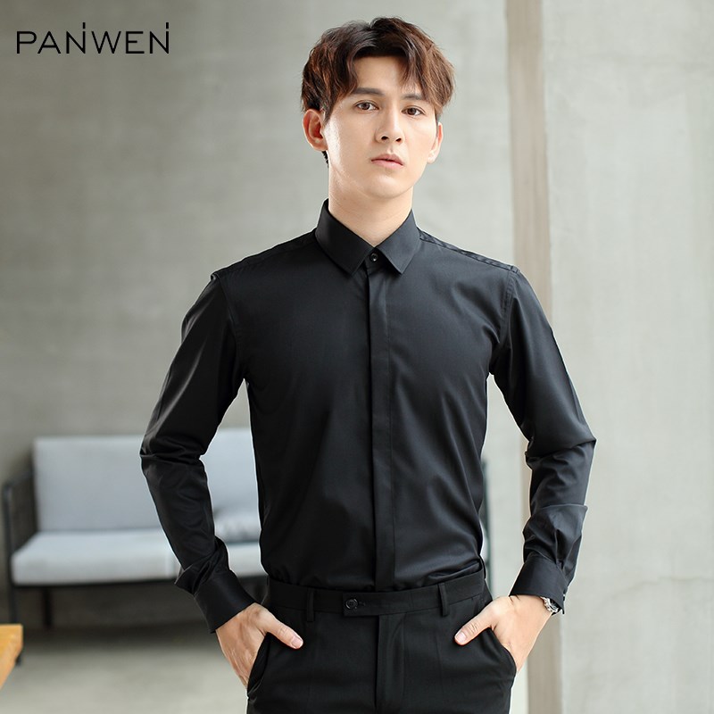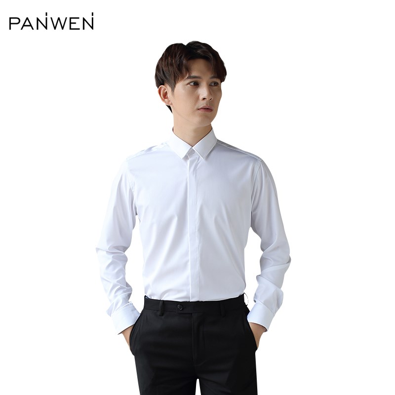 潘文衬衫男士长袖商务正装销售职业工作服制服男士伴郎修身白衬衫