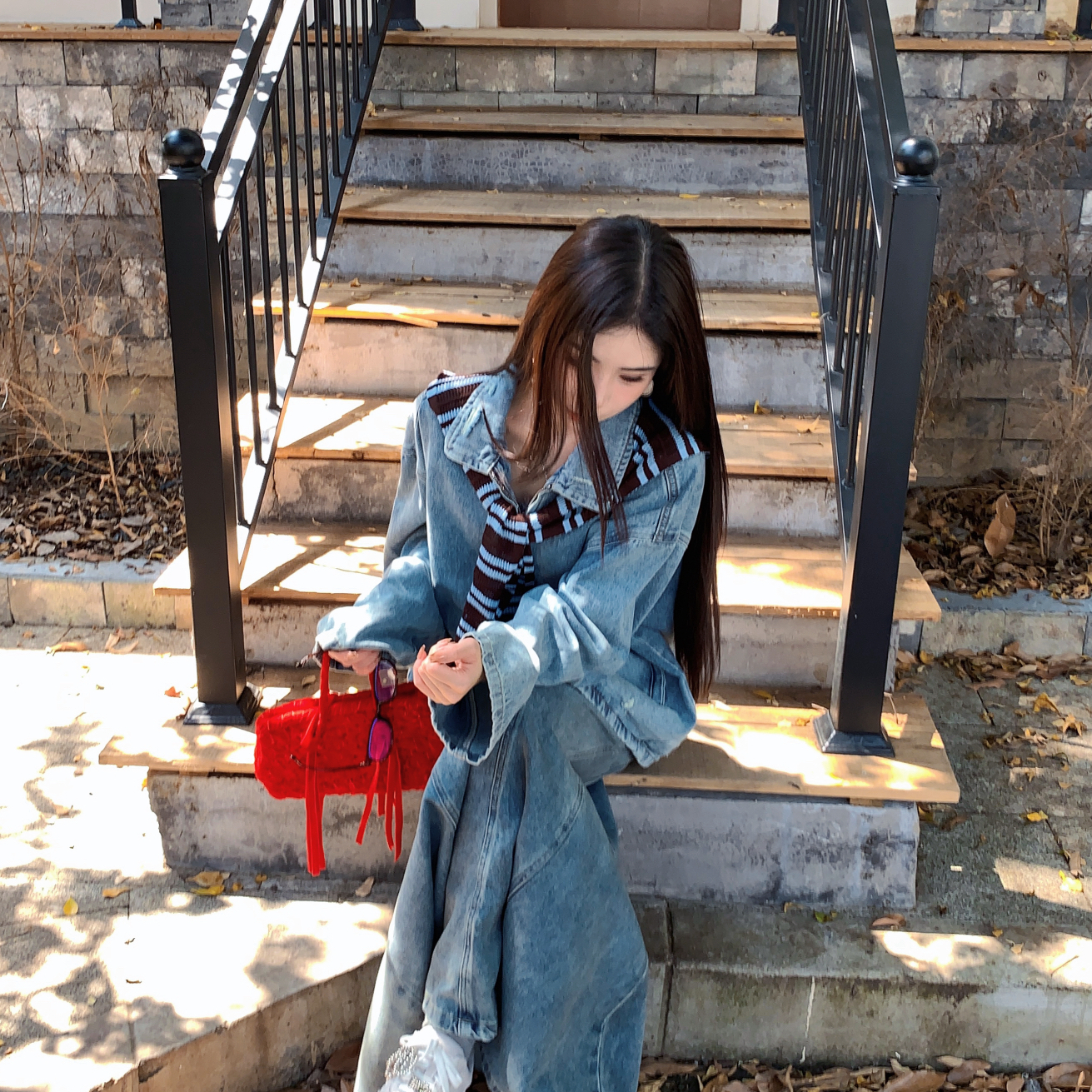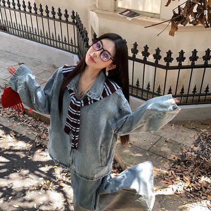 FEI MAO磨破牛仔外套女秋季新款休闲宽松美式复古夹克短外套8236