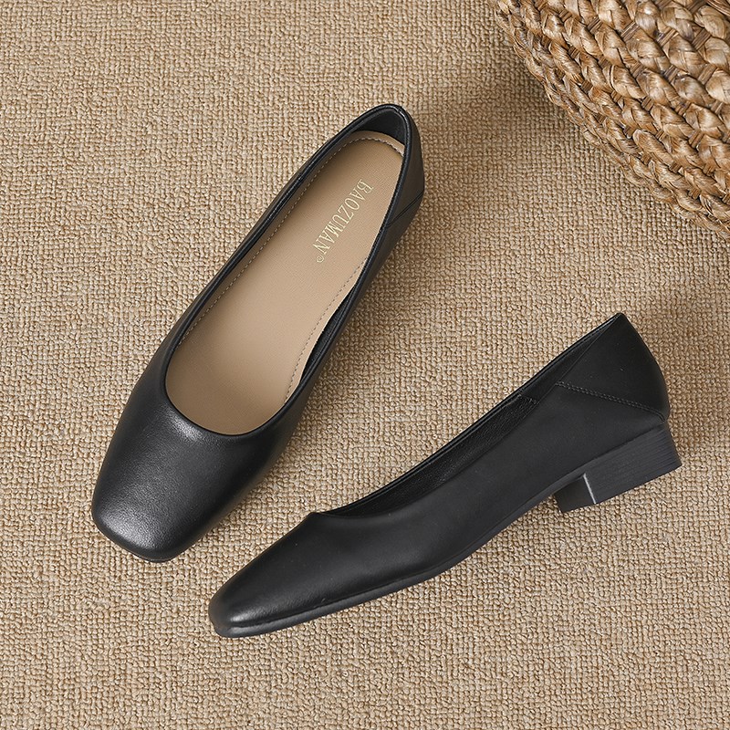 黑色皮鞋舒适粗跟夏季方头软底静音单鞋女久站不累职业平底工作鞋