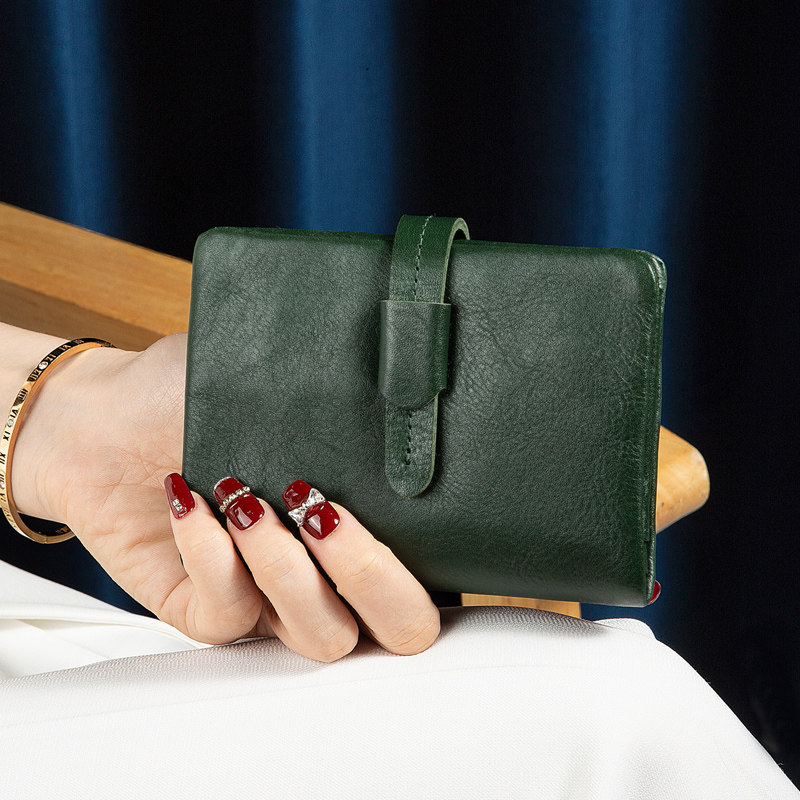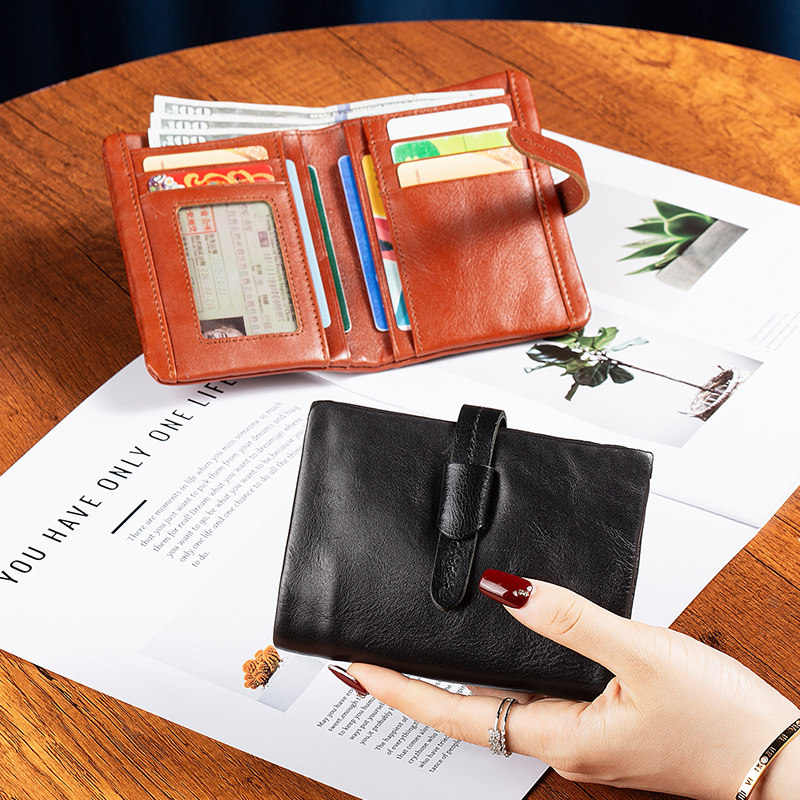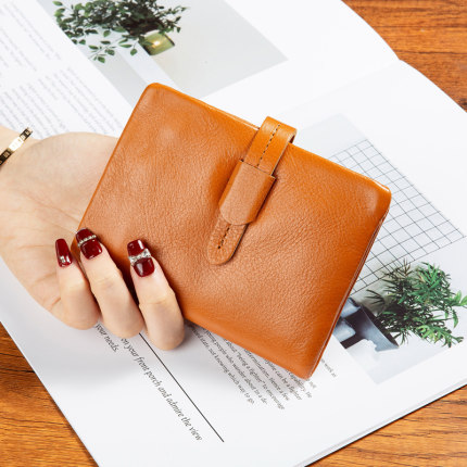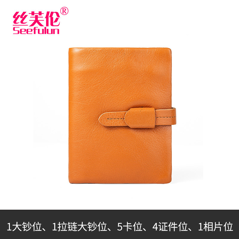 丝芙伦里外真皮短款折叠钱包皮夹