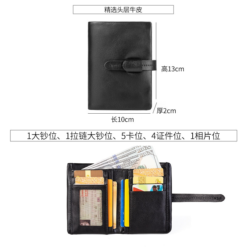 纯牛皮双大钞位短款折叠小钱包男女通用超薄小巧真皮两折钱夹卡包