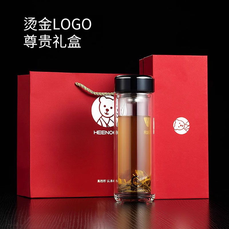 希诺双层玻璃杯纳米银抗菌杯男士高档商务礼品水杯带滤网茶杯子女