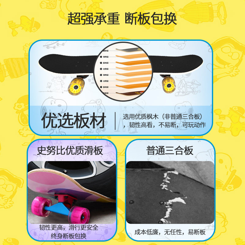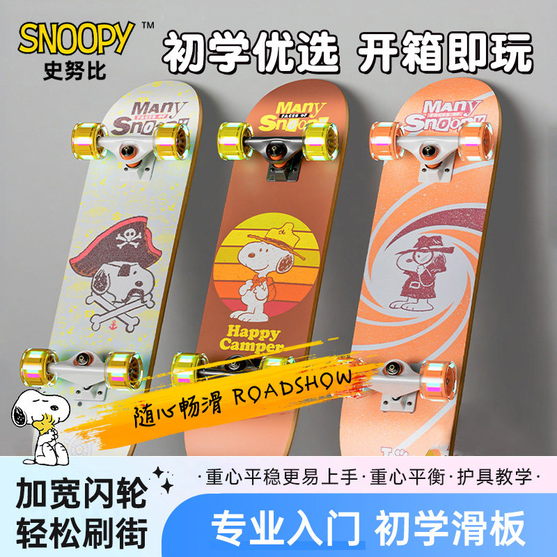 snoopy史努比官方正品专业滑板初学者儿童滑板车6岁到12岁青少年
