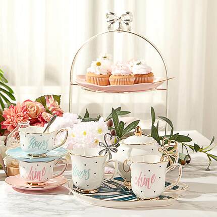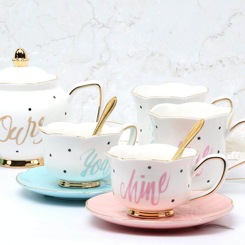 欧式波点金边咖啡杯杯碟套装英式花茶下午茶茶具杯子陶瓷带勺礼盒
