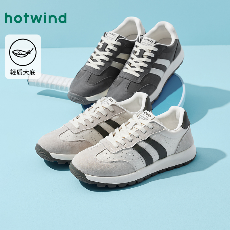 热风男鞋2025年秋季新款男士灰色运动休闲潮鞋透气百搭德训鞋子
