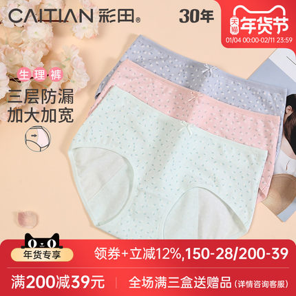 彩田新疆棉生理裤内裤女士中腰月经期防侧漏大姨妈纯色卫生三角裤