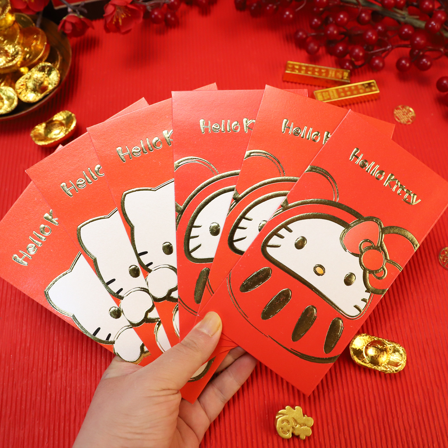 2026新款过年通用利是封可爱卡通日式烫金红包袋达摩KT猫红封包