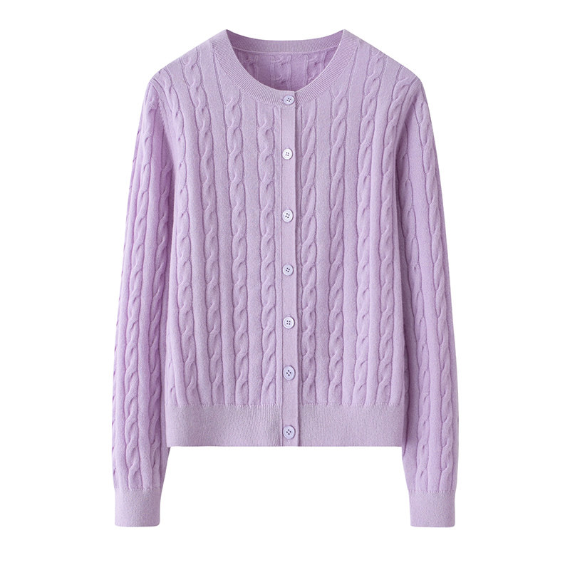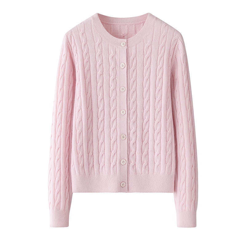 阿绒源100山羊绒绞花女开衫鄂尔多斯市圆领纯色针织外套休闲百搭