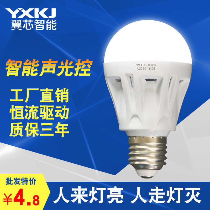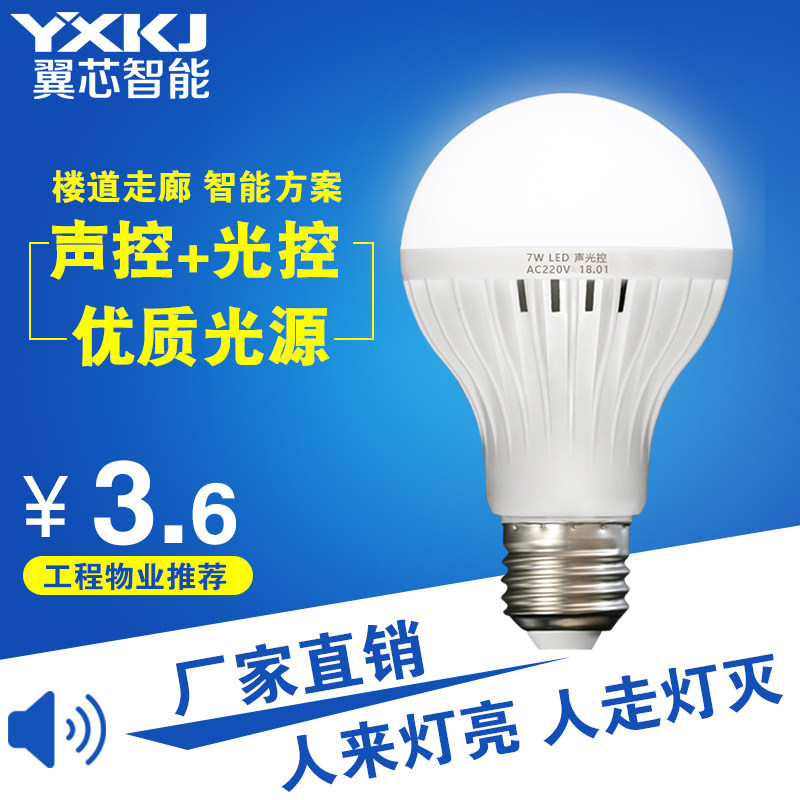led声控球形节能灯泡声光控照明楼道e27螺口物业小区走廓人体感应