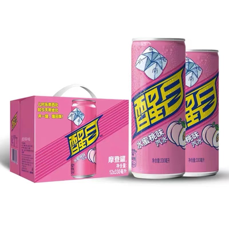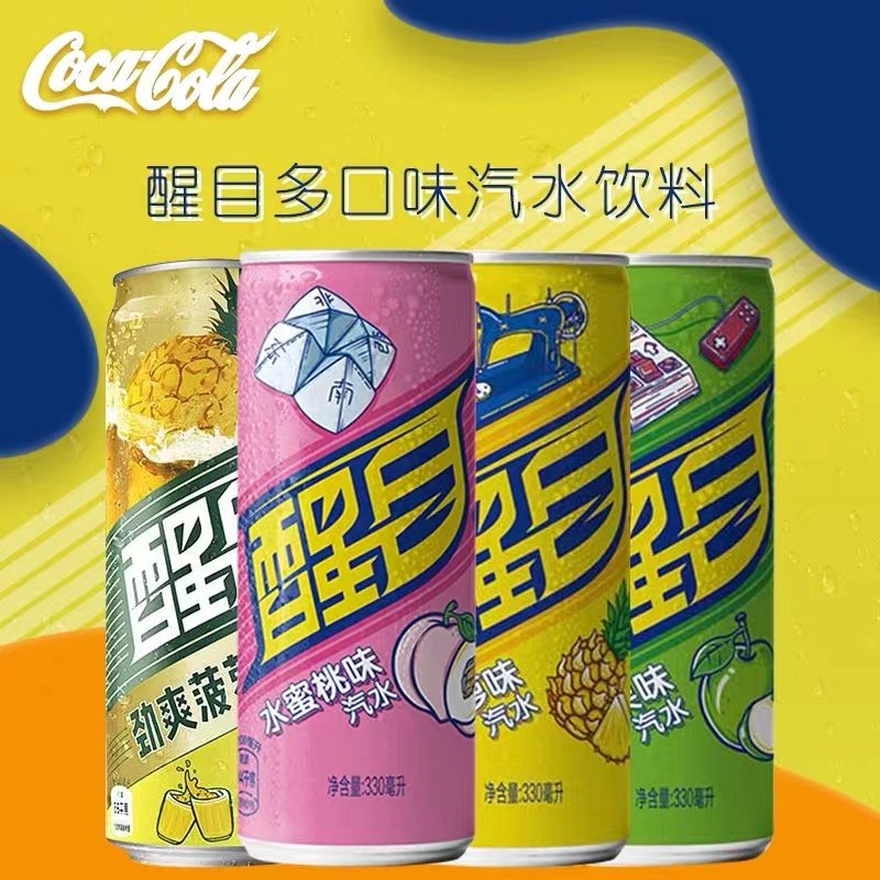 可口可乐醒目汽水怀旧饮料老汽水菠萝啤水蜜桃味碳酸饮料330ml/罐